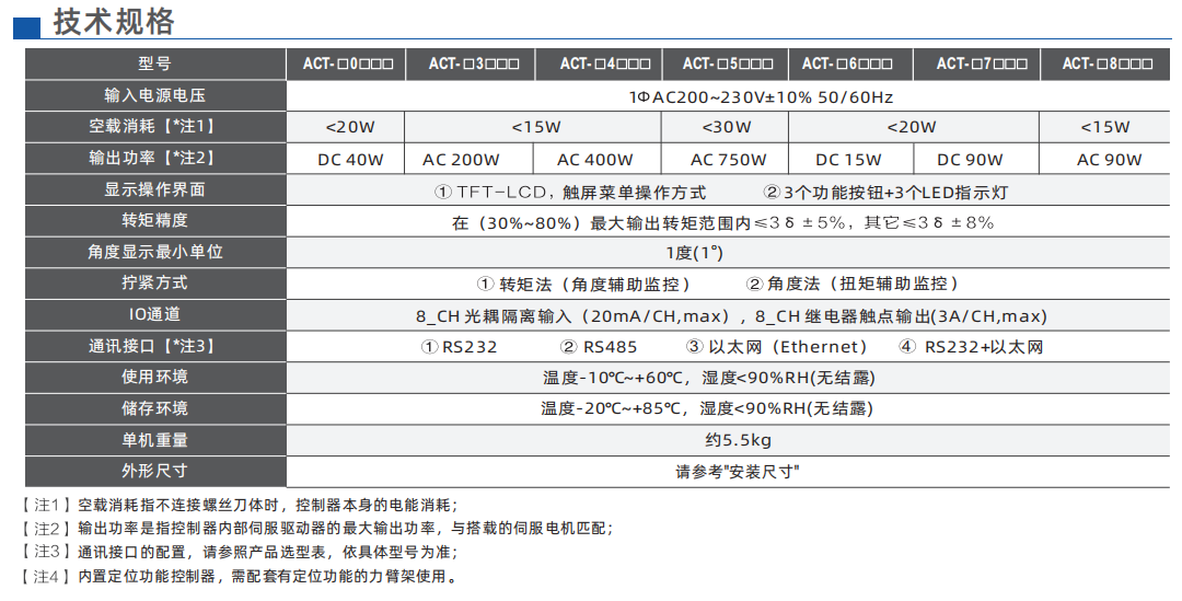 • 內置伺服驅動器,可提供扭矩、轉角及轉速等精密控制方式
