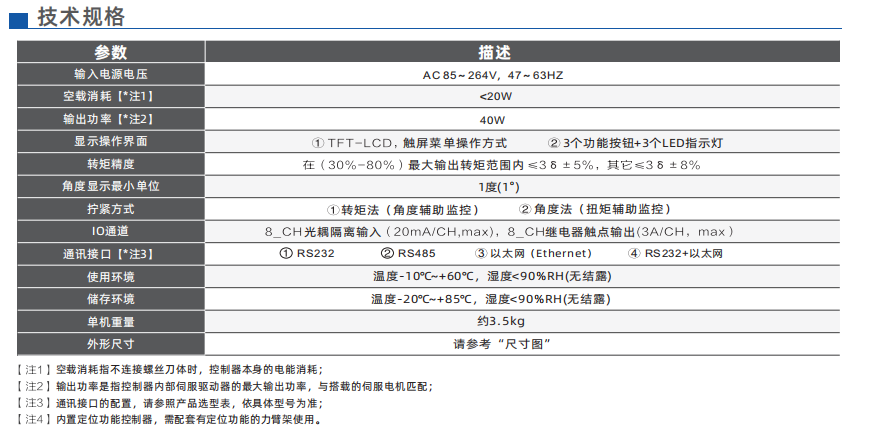• 內置伺服驅動器,可提供扭矩、轉角及轉速等精密控制方式