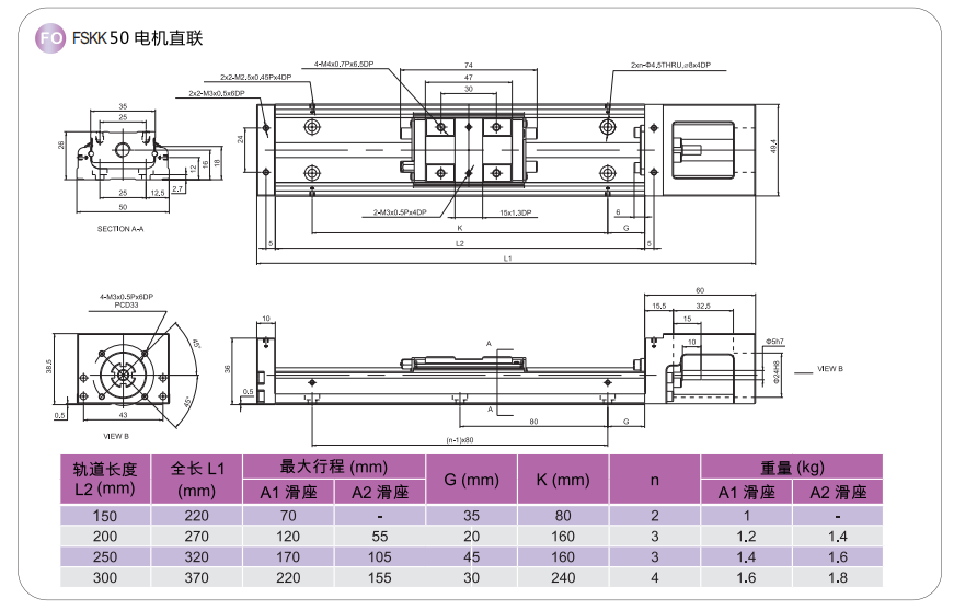 滑臺系列 FSKK Series 軌道一體式螺桿鋼基滑臺